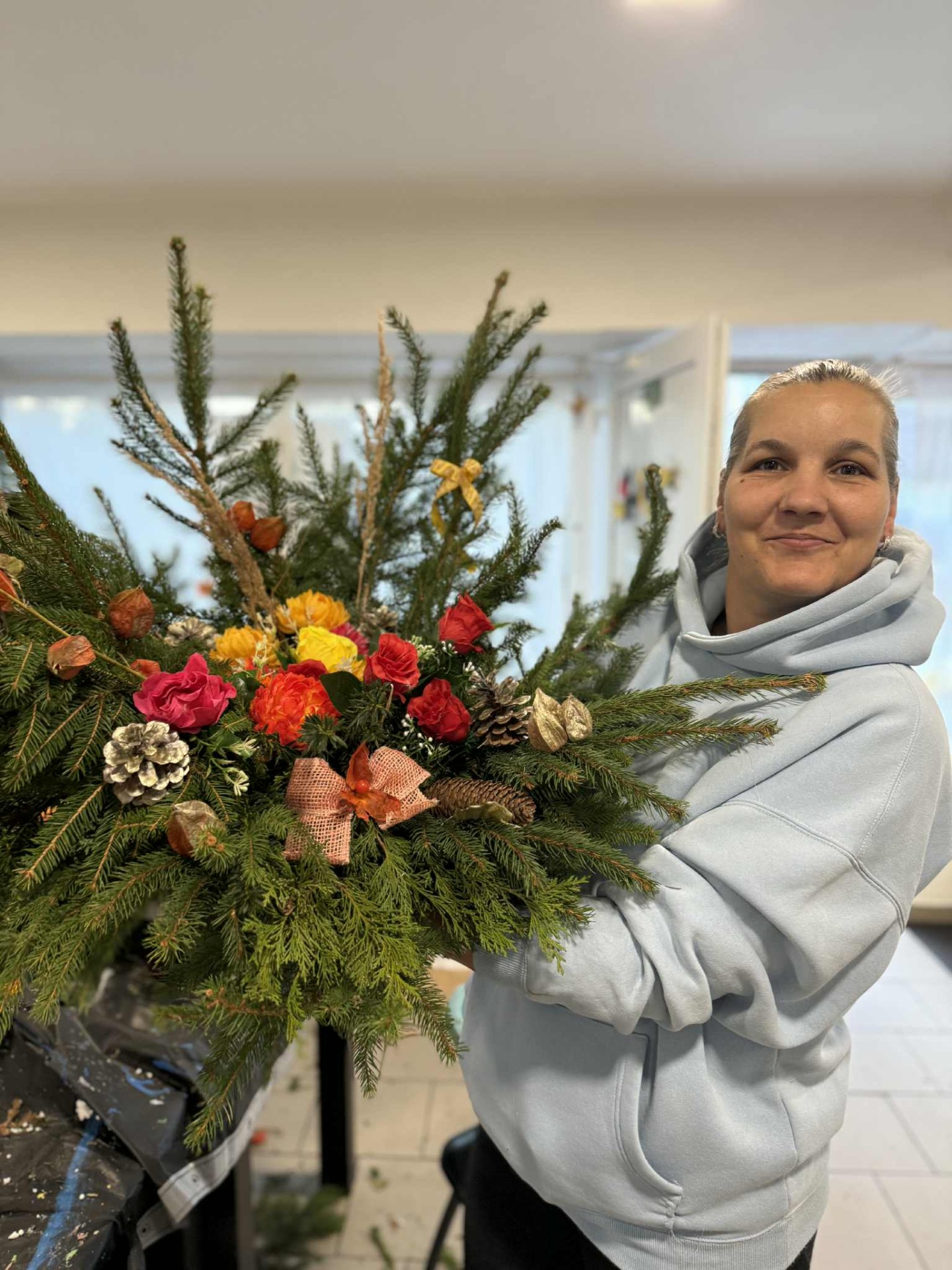 V pondělí odpoledne to v komunitním centru ožilo. Sešla se spousta šikovných lidí, kteří se zápalem tvořili dušičkové vazby.